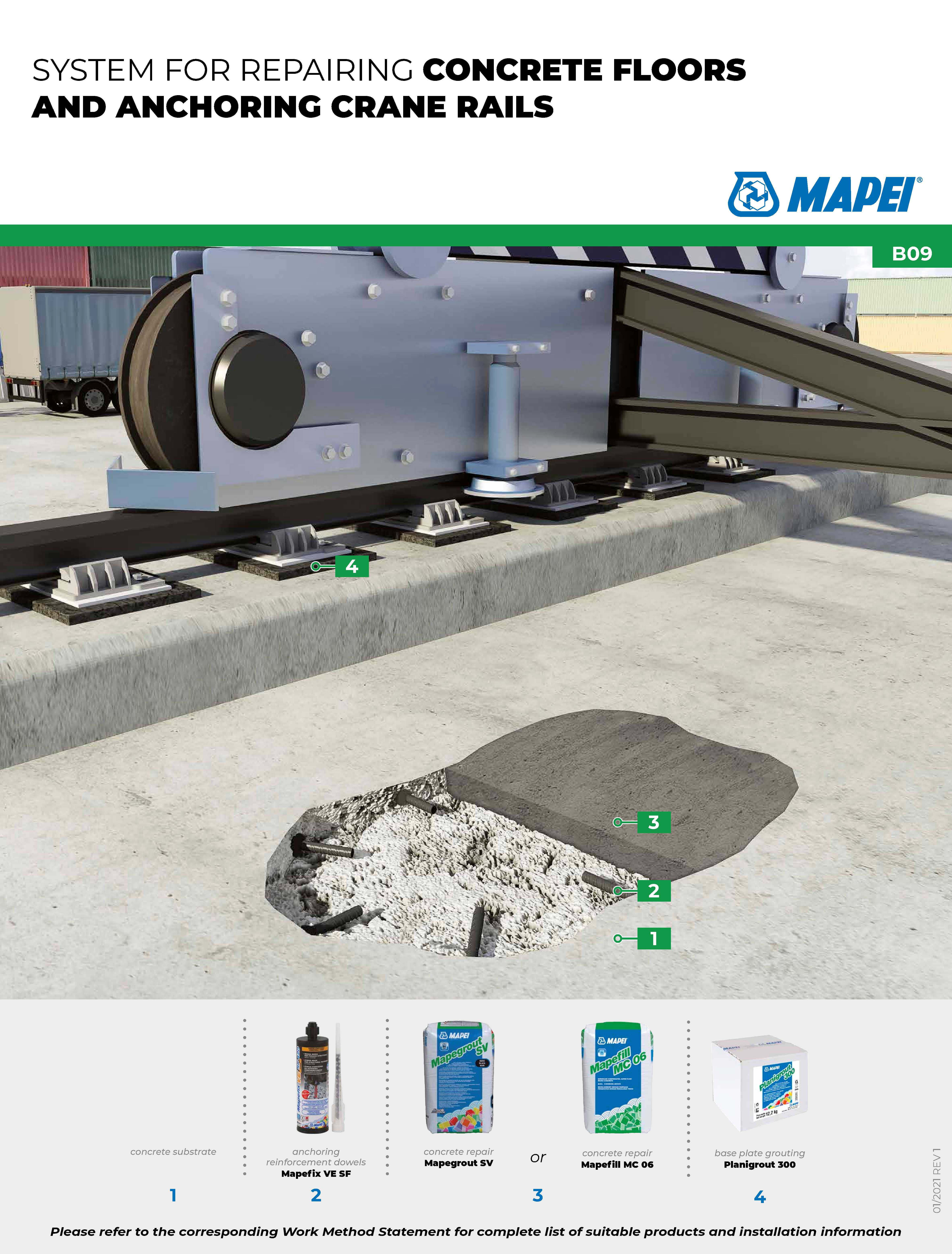 System for Repairing Concrete Floors and Anchoring Crane Rails - B09